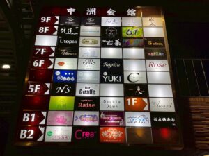 場所は国体道路沿いの中洲会館で、メインフロア14卓、個室8部屋で、1日のキャストの出勤人数は40名~45名の大型店。