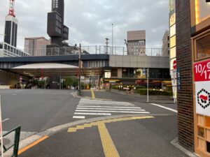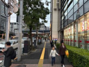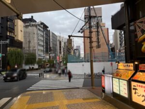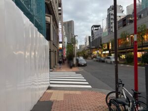 「難波橋」の交差点を横断歩道を渡って左折します。