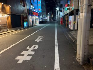 左手の一つ目の路地を越えて直進を続けます。