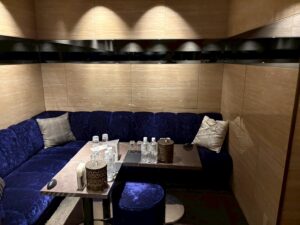 ロイヤルラウンジルーム 10,000円/50分/ルーム料込み 延長 10,000円/1セット 5,500円/0.5セット 初回セット/2セット+指名料込み 30,000円 シングルチャージ 3,000円/毎セット ※ボトル制・フルーツ盛り合わせ付き ※完全個室/1組様限定/カラオケあり TAX 10% サービス料 25%