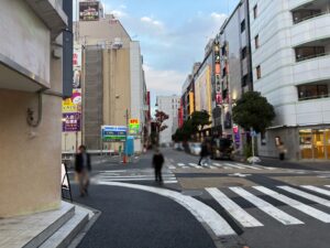 歩道橋を下りきったら歩道橋を左手にして直進します。